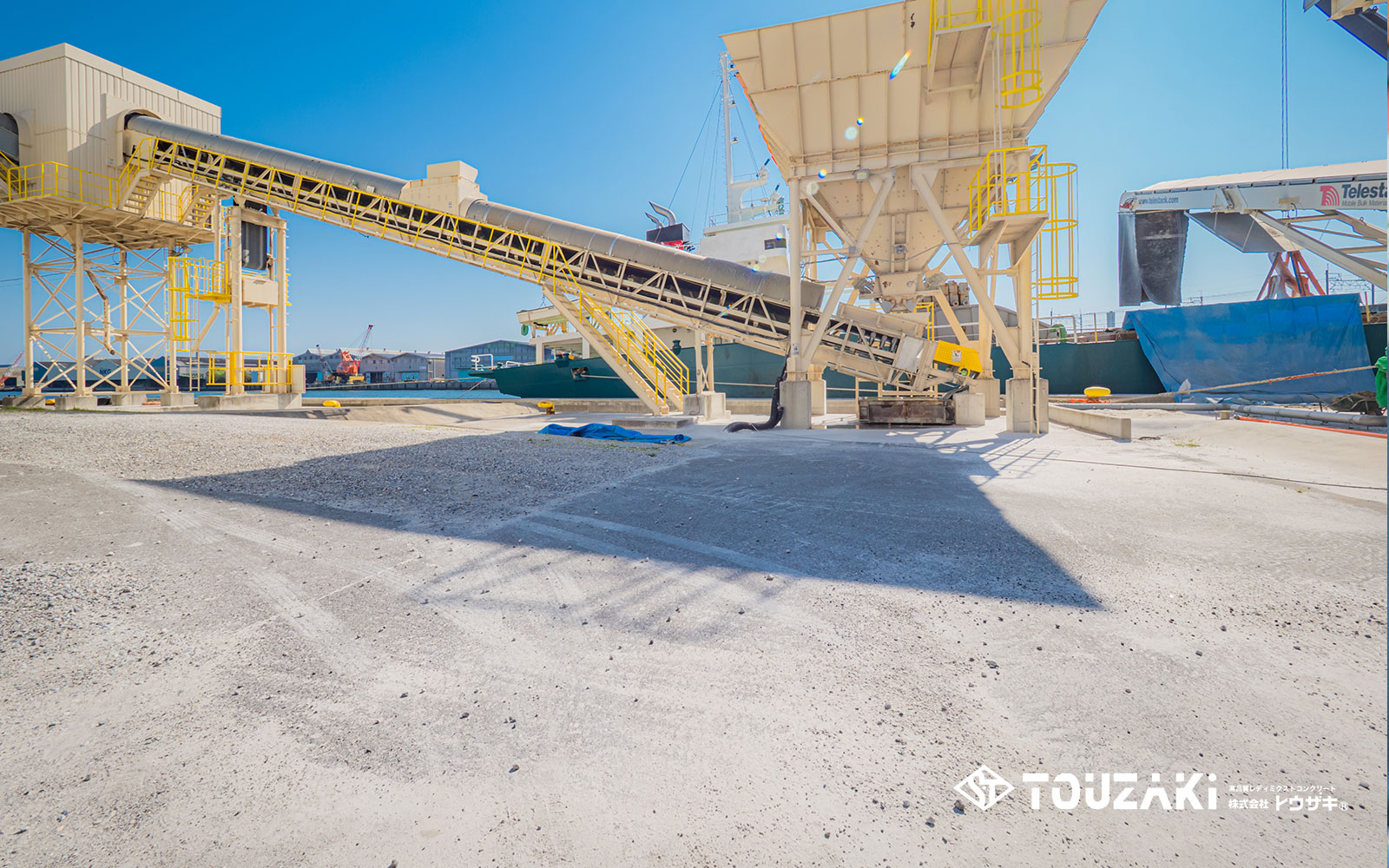 千葉県市川市に専用の原材料保管庫「市川ヤード」があります。ここには、全国の厳選された生コンクリートの材料が海洋運搬され、大量に保管されています。これにより、想定外の大量注文や緊急時にも、高品質の生コンクリートを安定的にお届けすることが可能です。