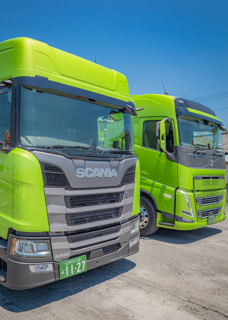トウザキでは自社トレーラーを増台しています。スカーニアや、ボルボといった、ドライバーなら一度は憧れる車種のトレーラーに乗れるチャンスがあふれています。