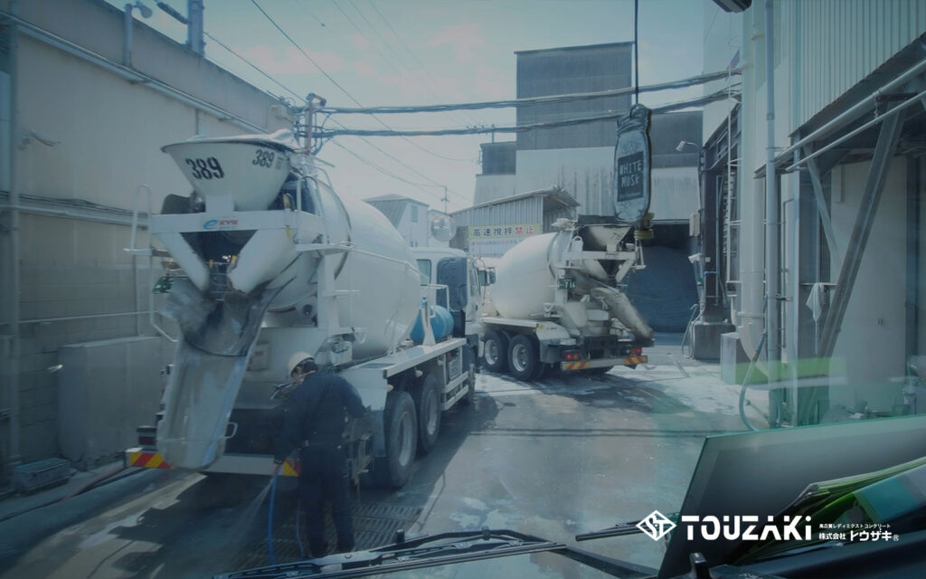 会社に戻り、洗浄、再度生コンを積んで運搬。1日に3〜6件の現場に行きます(どれも1時間以内に着く場所です)